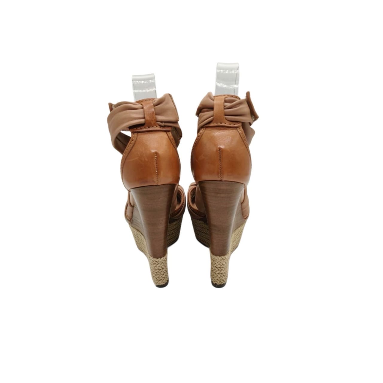 Burberry Tan Leather Espadrille Wedge Sandals Size: 37