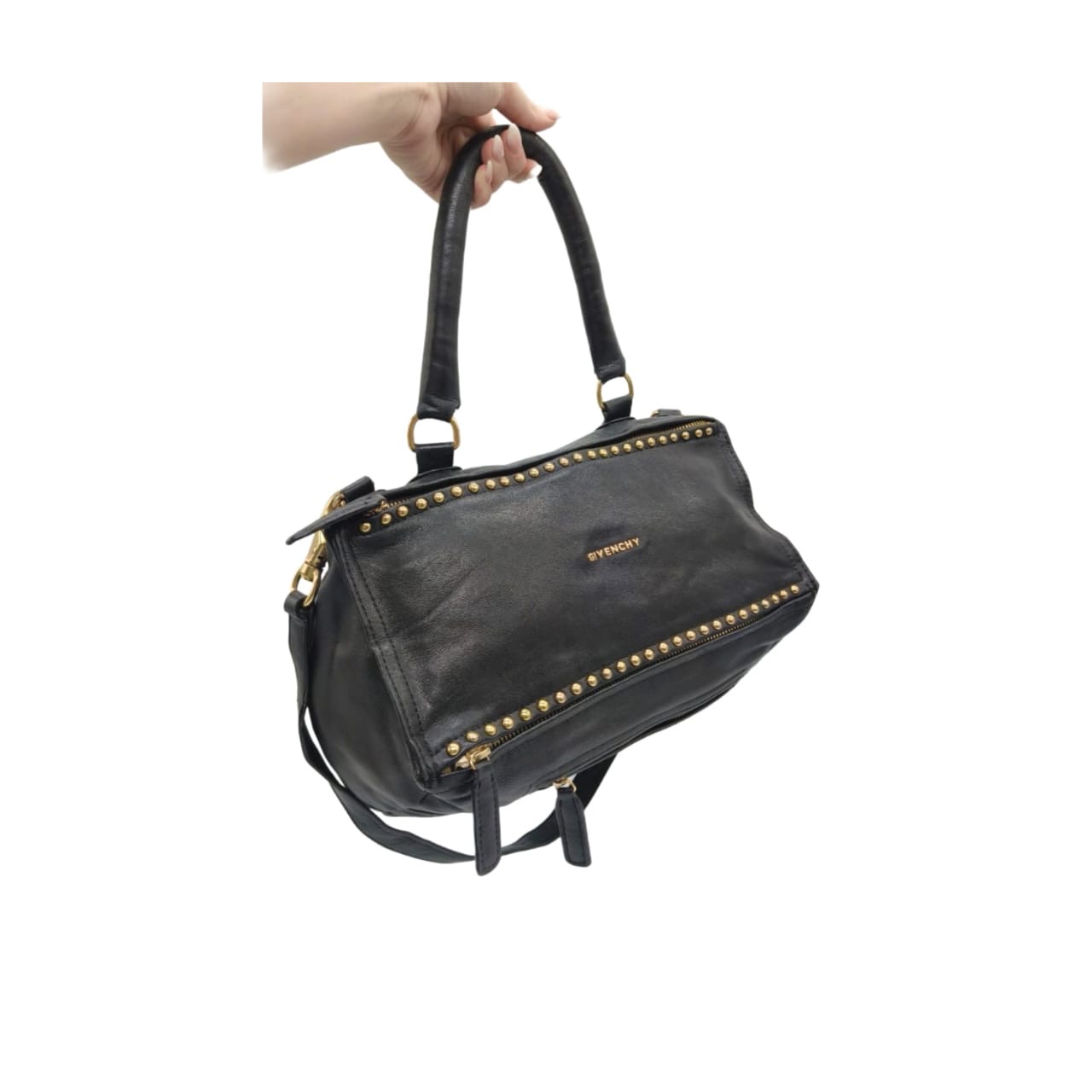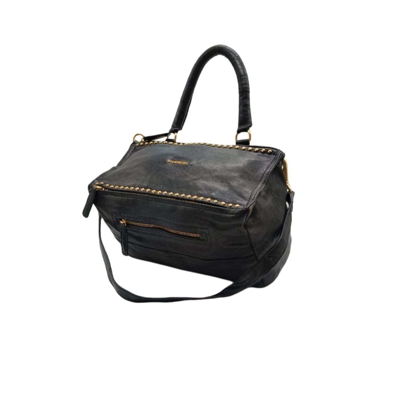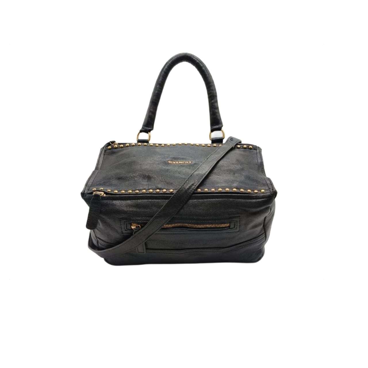 Givenchy Pandora Black Calfskin Leather & Gold Tone studded Shoulder Bag